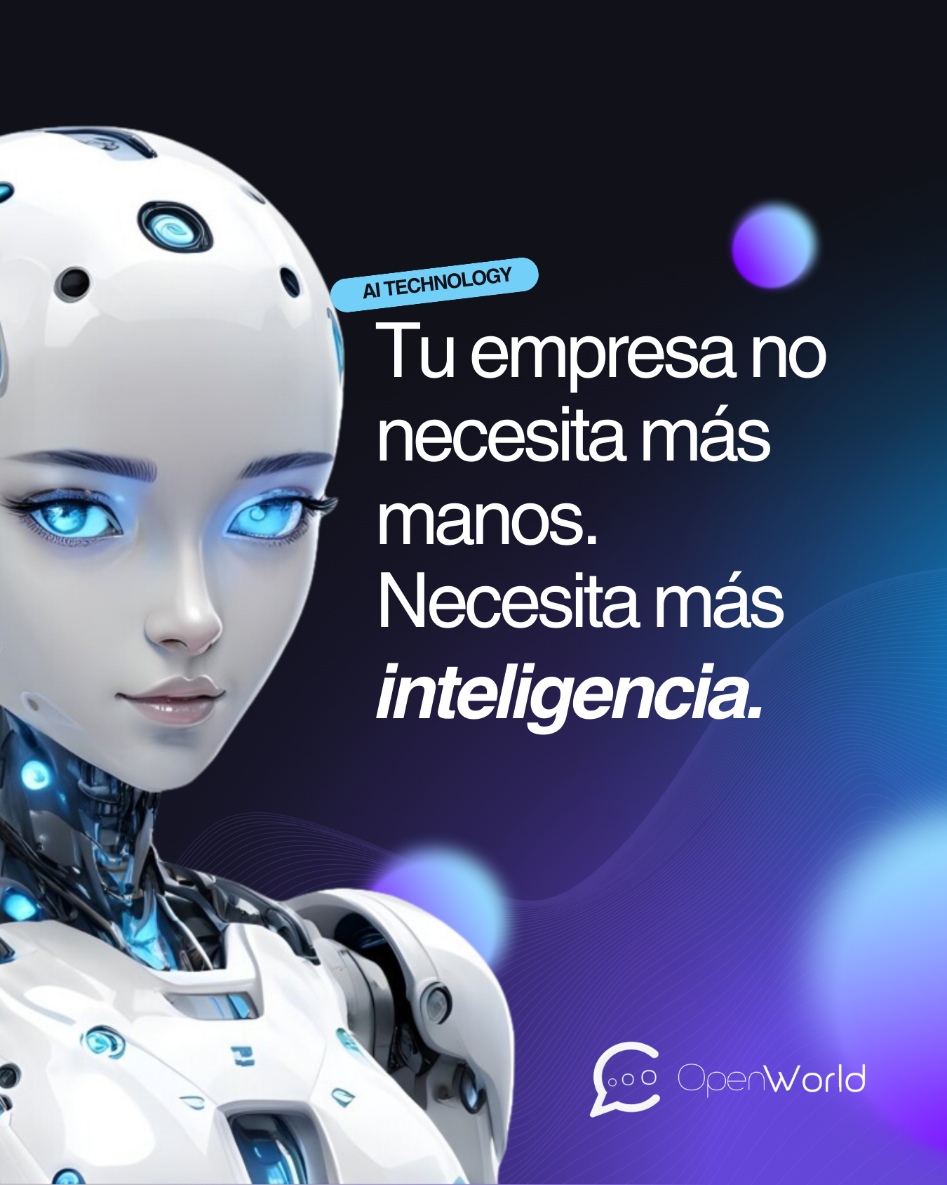 En OpenWorld no creemos en soluciones genéricas. Diseñamos automatizaciones con inteligencia artificial que se adaptan a tu negocio, con resultados rápidos, medibles y respaldados por más de 15 años de experiencia en transformación digital. Nuestro enfoque combina estrategia, innovación y tecnología aplicada, para que veas impacto real en semanas, no en meses.